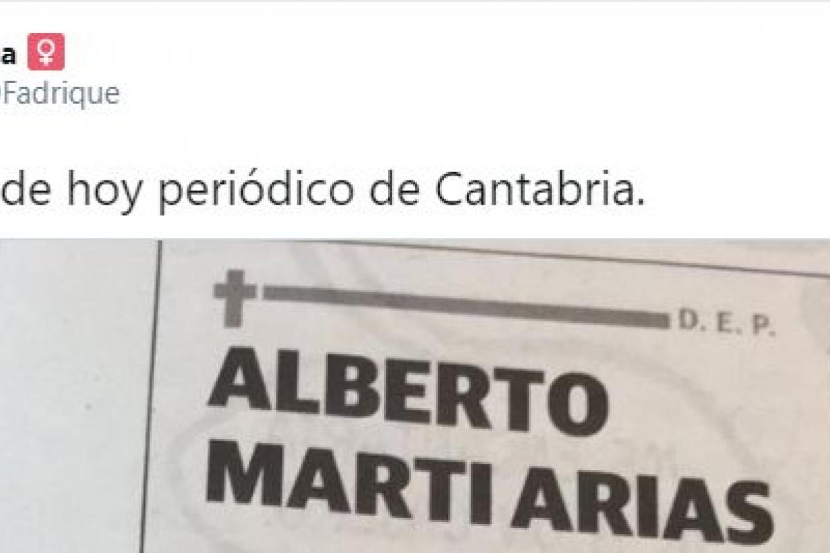 La llamativa esquela vista en un periódico de Cantabria que ya es historia de Twitter