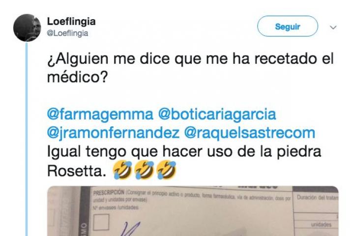 Nunca una receta del médico dio tanto juego en Twitter. Un usuario llamado Loeflingia ha compartido en su cuenta una fotografía de lo medicamento que le ha mandado el doctor.