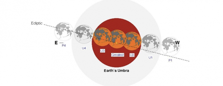 Un eclipse lunar se produce cuando la Luna cruza la sombra de la Tierra (concretamente, la umbra, la parte más oscura de la sombra) y pasa a adquirir un brillo rojizo, de donde viene el nombre de luna de sangre. El proceso completo de un eclipse lunar total tarda unas cuantas horas en desarrollarse y resulta muy impactante. Sucede cuando el Sol, la Tierra y la Luna, en ese orden, están perfectamente alineados, por lo que la sombra de la Tierra cubre por completo la Luna. Ese momento en el que la sombra de la Tierra abarca por completo la Luna se denomina totalidad.