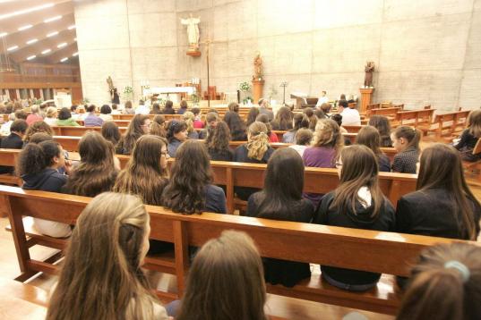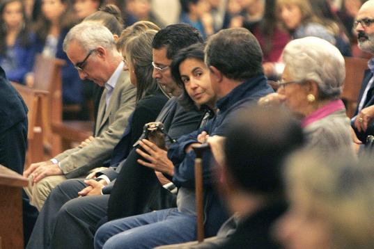 Alfonso Basterra, al fondo, durante el funeral por su hija.