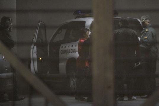 Alfonso Basterra, esposado, tras asistir al registro de su casa en Santiago.