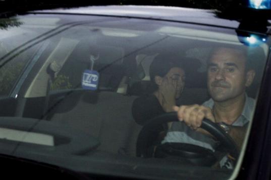 Rosario Porto llora mientras es introducida en el coche de la Guardia Civil tras el registro de su casa.