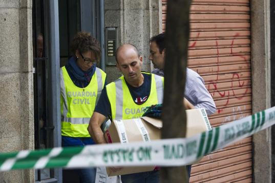 Los agentes sacan cajas con documentación y pruebas de la casa de los padres de Asunta en Santiago.