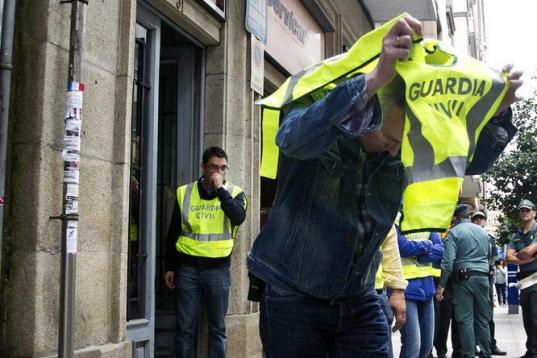 La Guardia Civil escolta a los padres de Asunta tras el registro de la vivienda.