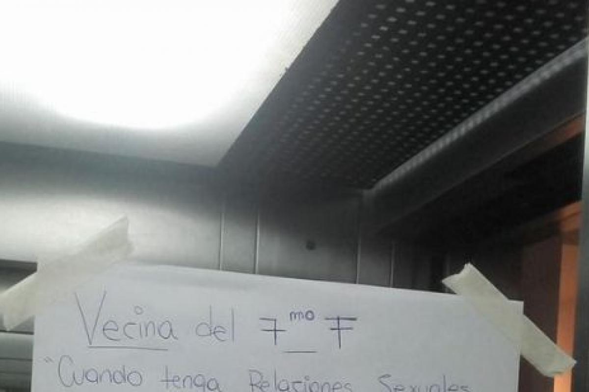 “Vecina del 7ºF: cuando tengas relaciones sexuales trate de no gritar como una loca. Sea respetuosa. Los menores de edad y el resto de los vecinos se lo agradecerán. Segundo aviso”, pone en ese cartel.