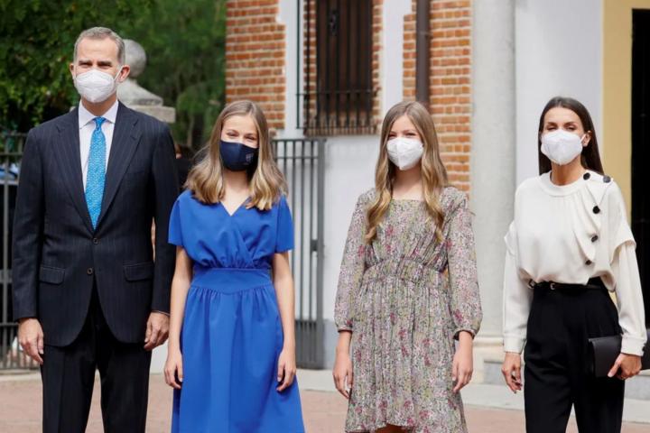 El posado de la familia real ha sido mucho menos multitudinario que el de la comunión de Leonor. La pandemia ha reducido al máximo los invitados y los alumnos solo podían estar acompañados de sus padres y hermanos.