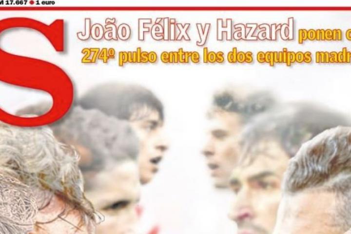 Con el titular “Viejo derbi, nuevo duelo”, podemos ver los rostros que han marcado este tipo de enfrentamientos, desde los nuevos (Joao Félix y Hazard) hasta los más antiguos (Futre y Butragueño).
