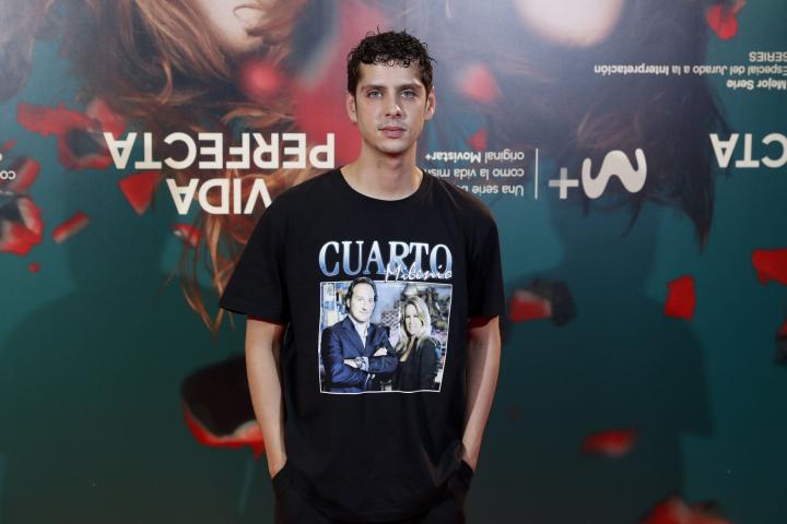 El intérprete ha pasado por la alfombra roja de Vida perfecta, la serie de Letizia Dolera en Movistar, con una camiseta de Cuarto Milenio, en la que se pueden ver las caras de Iker Jiménez y de Carmen Porter, presentadores del programa de Cuatro.