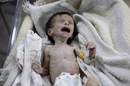 Esquelética, con las huesos marcando su piel translúcida, la pequeña Sahar, de un mes, tenía problemas para respirar. Poco después murió en un hospital de la Guta Oriental, una zona controlada por los rebeldes y asediada por el régimen sirio, donde cientos de niños sufren malnutrición.
