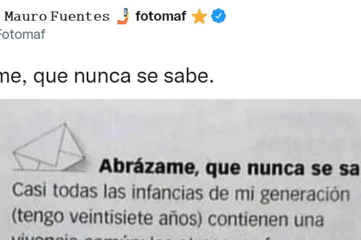 En ella, su autor destaca la necesidad del contacto humano con un titular que lo dice todo: “Abrázame, que nunca se sabe”.