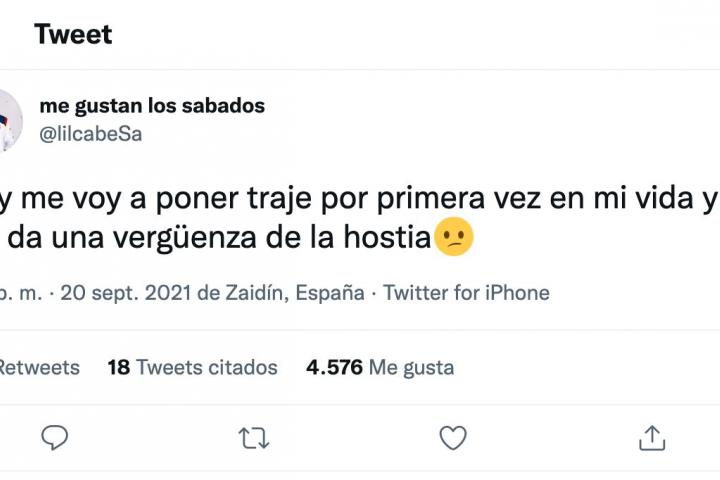 “Hoy me voy a poner traje por primera vez en mi vida y me da una vergüenza de la hostia”, ha escrito Ginés en su perfil de Twitter.