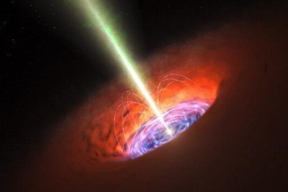 Los agujeros negros supermasivos generalmente crecen al extraer material de un disco de materia circundante. Para el crecimiento más rápido, este proceso genera cantidades prodigiosas de radiación en una región muy pequeña alrededor del agujero negro, y produce una fuente extremadamente brillante y compacta llamada cuásar.