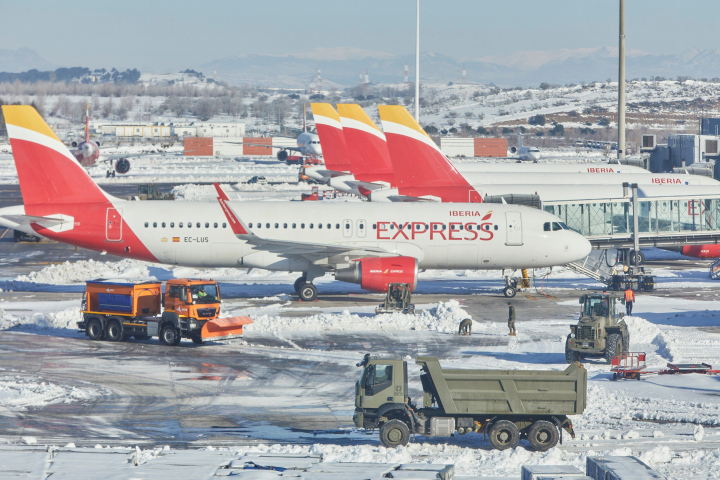 Iberia operará a partir de este martes el 50% de sus vuelos de corto y medio radio que conectan Madrid con el resto de España y Europa, y todos los de largo radio inicialmente programados en el aeropuerto de Barajas aunque pueden sufrir retrasos, debido a las limitaciones por el temporal de nieve. Según refiere en una nota la compañía aérea, el aeropuerto de Madrid seguirá operando este martes aunque “con muchas limitaciones debido al hielo y nieve depositado en las pistas y en las zonas de aparcamiento de los aviones, lo que reduce muy significativamente el número de operaciones posibles”.
