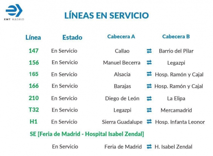Estas son las líneas en servicio de la Empresa Municipal de Transportes de Madrid