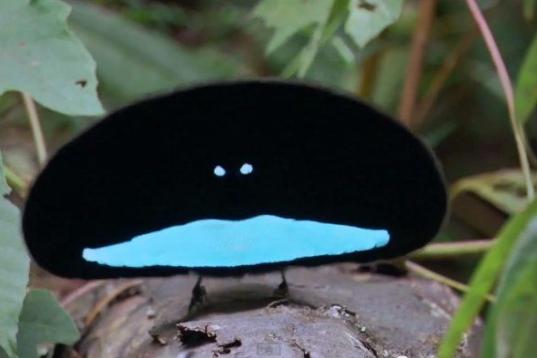 Parece un photoshop mal hecho, pero es el despliegue de los encantos del macho de una de las aves del paraíso de Papúa Nueva Guinea.
