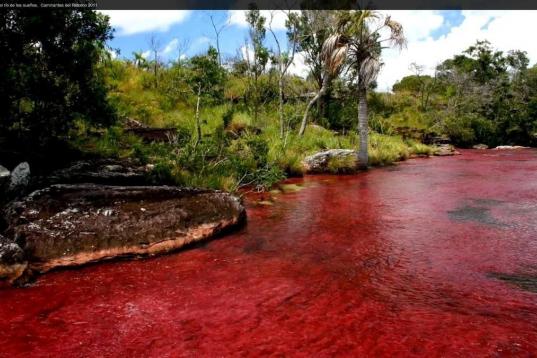 El arcoíris que se derritió. Así conocen en Colombia al Caño Cristales, ubicado en la sierra de la Macarena. También llamado el río de los cinco colores por las masas de rojo, amarillo, verde, azul y negro que pueblan su fondo.