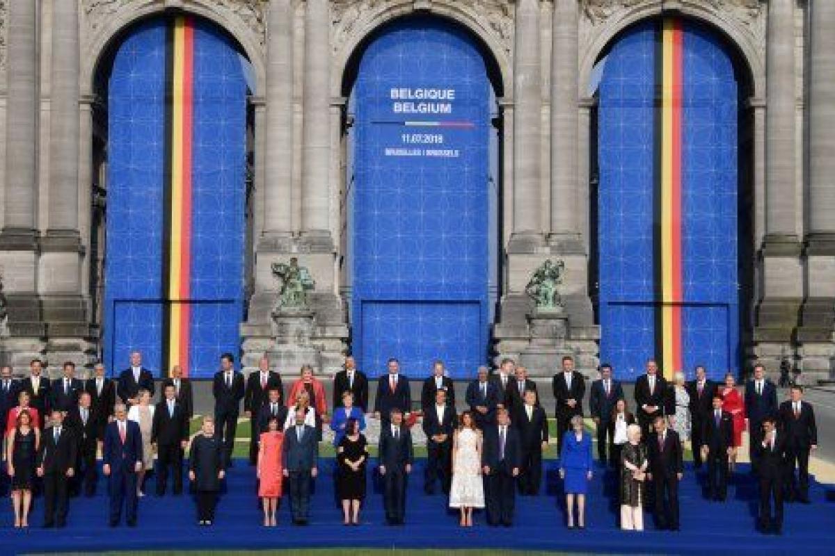 Los líderes de la OTAN y sus parejas, posando en la foto final de familia, en el Parque del Cincuentenario de Bruselas.DENIS CHARLET via Getty Images