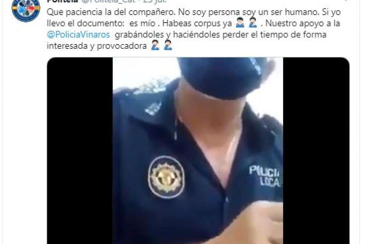 Un agente de la policía local de Vinarós, en Castellón, se ha vuelto viral en los últimos días después de un encontronazo con una señora que iba sin mascarilla. La mujer en cuestión, autora de la grabación, llevaba un papel hecho por un abogado en el que se mostraba que estaba exenta de llevarla.