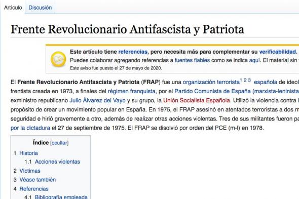 La página del FRAP en Wikipedia sufre hasta 28 cambios en seis horas