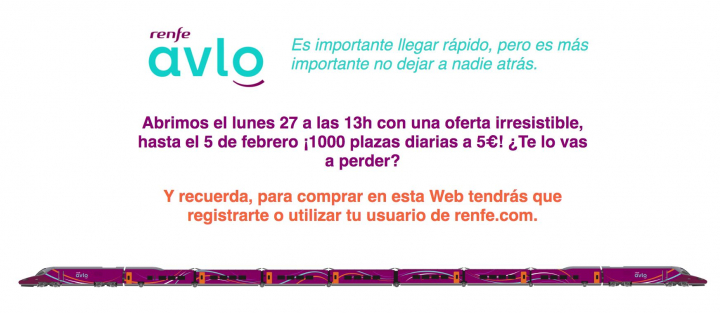 La página web de Avlo, el 'AVE low cost' de Renfe, se cae