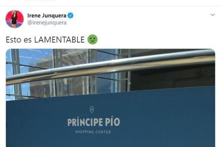 La reportera ha fotografiado la frase que hay en un letrero del Centro Comercial Príncipe Pío de Madrid y lo ha acompañado del texto: “Esto es lamentable”.