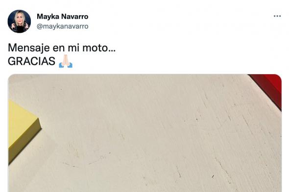 La periodista Mayka Navarro, habitual de programas como El Programa de AR y Ya es mediodía, en Telecinco, y de La Vanguardia, ha compartido en su perfil oficial de Twitter la nota que una persona le dejó al lado de su moto.