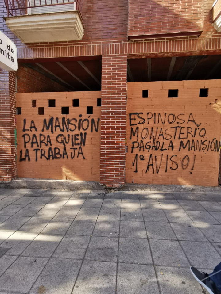 Esta es la pintada dedicada a Rocío Monasterio, portavoz de la formación ultraderechista en la Asamblea de Madrid, e Iván Espinosa de los Monteros, vicesecretario de relaciones internacionales de Vox y pareja de Monasterio.