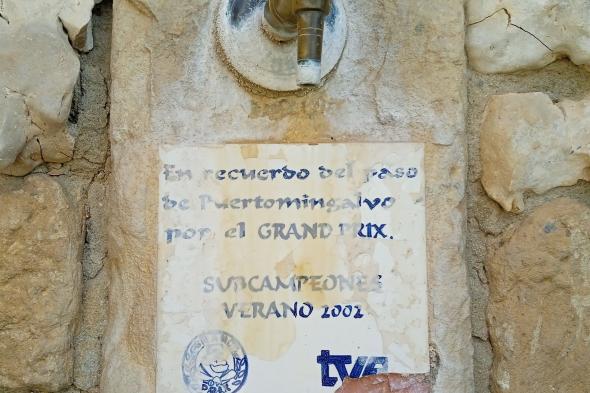 “En recuerdo del paso de Puertomingalvo en el Grand Prix. Subcampeones del verano 2002”, se puede leer, junto a los logos de TVE y del concurso que presentaba Ramón García.