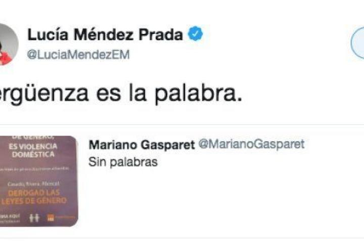 Lucía Méndez, redactora jefe de Opinión de El Mundo, lo ha tildado de "vergüenza" en su cuenta de Twitter. Ana Pastor, que también lo ha publicado en su perfil, ha querido mandar un mensaje de apoyo a su compañera de profesión: "Valiente Lucía. Siempre".