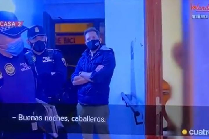 Además, es generoso. “No estoy solo, estoy con mi colega. Ella está mejor que yo. Si queréis pasar estáis invitados. ¿Cuántos sois?” Al percatarse de que los agentes van acompañados por un equipo del programa, el hombre se viene, más, arriba.