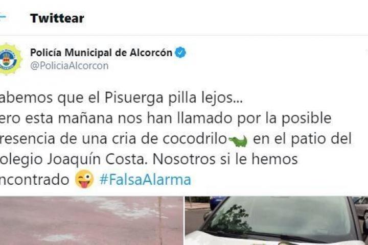 Ahora, la Policía de Alcorcón, en Madrid, ha recibido una llamada que ha hecho recordar aquella anécdota de Valladolid. Los agentes tuvieron que acercarse al colegio Joaquín Costa después de recibir un aviso que aseguraba que había una cría de cocodrilo en el patio.