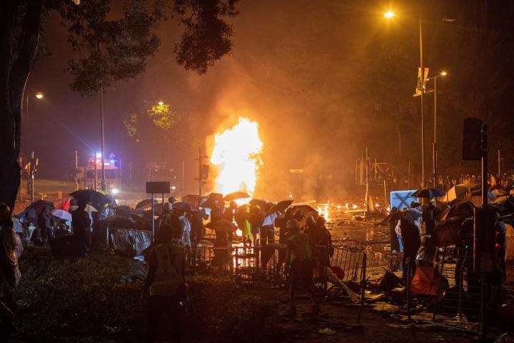 La universidad se ha convertido en el escenario de fuertes enfrentamientos entre los manifestantes, que han prendido fuego al acceso principal del campus, y los agentes, según ha informado la cadena de televisión pública RTHK.