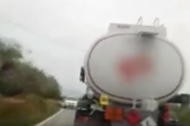 Los Mossos d’Esquadra han publicado en Twitter un vídeo que pone los pelos de punta en el que se ve cómo un camión cisterna de gasolina impide que el coche que está grabando le adelante.