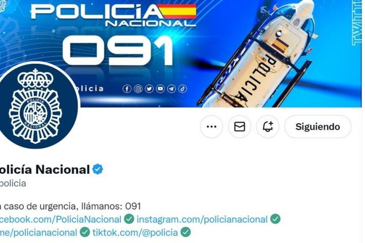 La cuenta de Twitter de la Policía Nacional.Twitter