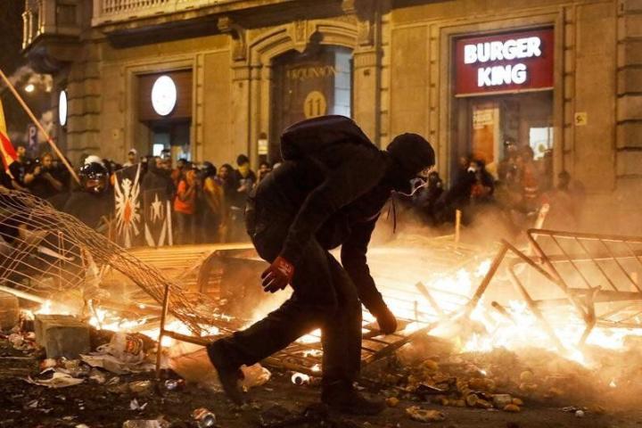 Fuego, barricadas y más violencia en Barcelona