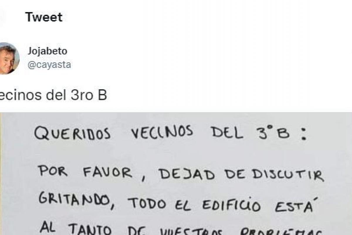 El último ejemplo lo protagoniza estos días el usuario @cayasta, que ha subido a la red social un cartel en el que se evidencia que dos vecinos no se llevan precisamente bien.