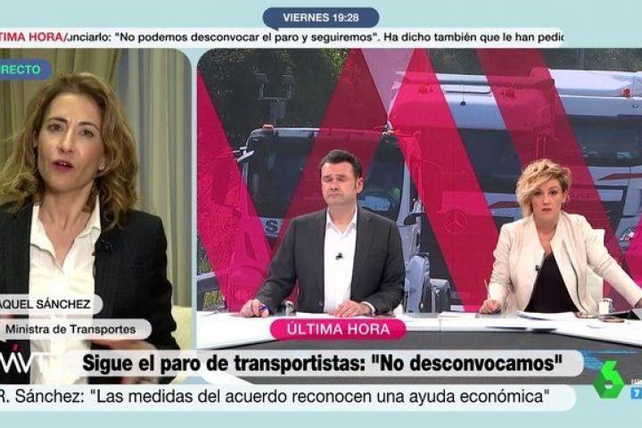 Raquel Sánchez, ministra de Transportes, Movilidad y Agenda Urbana, ha analizado en el programa Más Vale Tarde la reunión que en la tarde de este viernes ha llevado a cabo con la plataforma convocante de los paros que se están llevando a cabo en España.