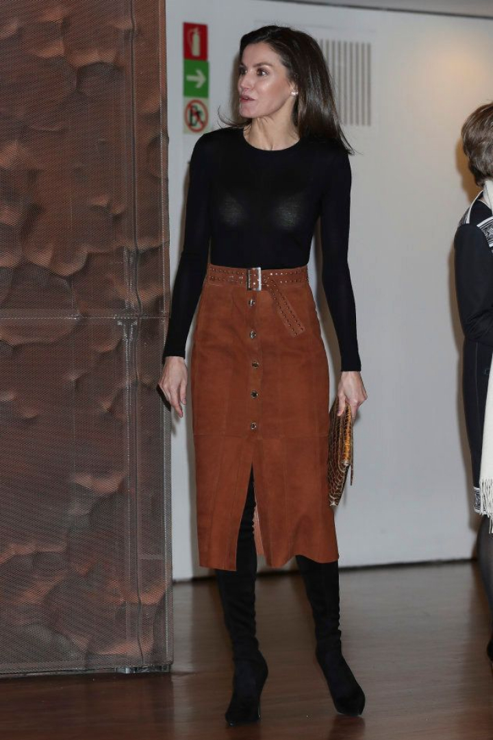 El Daily Mail destaca que, en cualquier caso, la reina iba "elegante" con una falda de ante marrón.