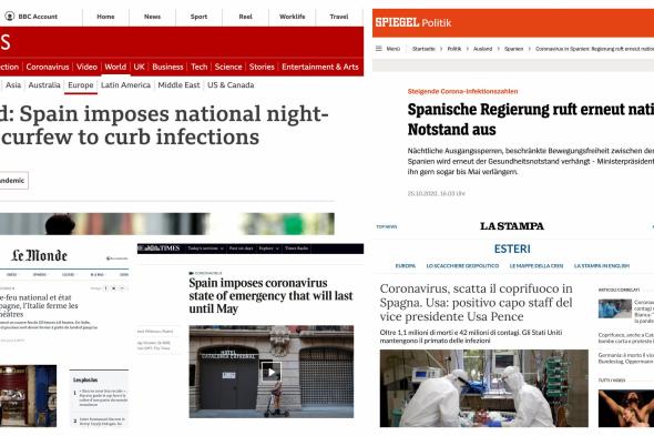 La noticia del nuevo estado de alarma decretado en España ha sido profusamente recogida en la prensa internacional, que destaca que la medida era “necesaria” ante la “gravedad” de la situación del coronavirus en nuestro país, con más de un millón de infectados.