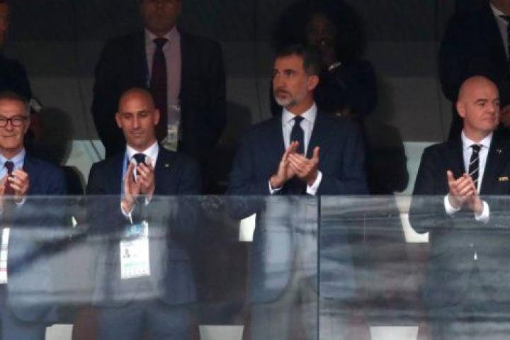 Momentos antes del inicio, justo cuando han sonado los himnos, numerosos tuiteros han pensado lo mismo: el Rey ha tenido que irse a Rusia para no escuchar pitos.