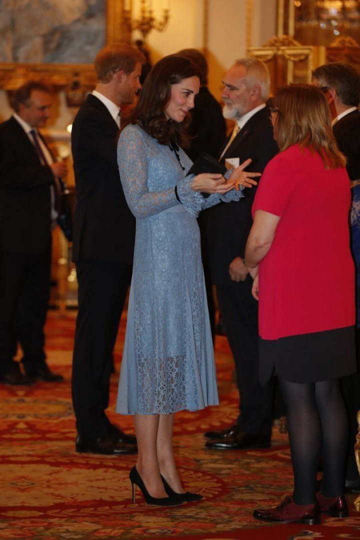 Por este motivo su agenda había sido cancelada y por eso hasta ahora no se la había podido ver en este tercer embarazo. Así ha sido hasta este martes, cuando la duquesa ha participado en un acto en el Palacio de Buckingham con motivo del Día Mundial de la Salud Mental, causa con la que tanto ella como los príncipes Guillermo y Enrique están muy comprometidos.