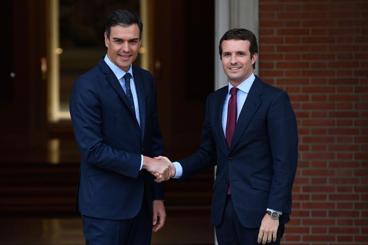 El presidente del Gobierno en funciones, Pedro Sánchez, ha recibido este lunes en La Moncloa al líder del PP, Pablo Casado, en la primera ronda de contactos iniciada por jefe del Ejecutivo tras las elecciones generales.
