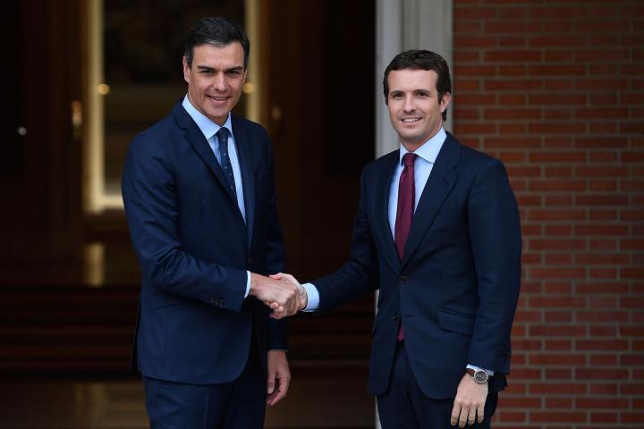 La primera foto de Sánchez con Casado tras el 28-A