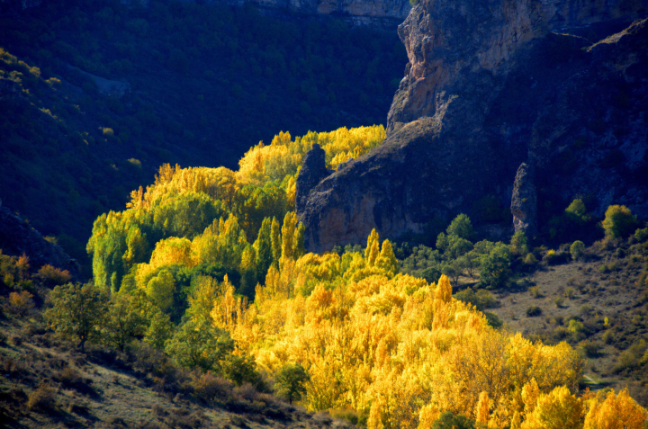 No se queda atrás el Barranco del Rio Dulce. Aquí el agua ha labrado la roca caliza dejando una impresionante hoz con una cobertura vegetal que se vuelve amarilla en esta época, formando una de las postales de naturaleza más fotogénica de todo el país.
