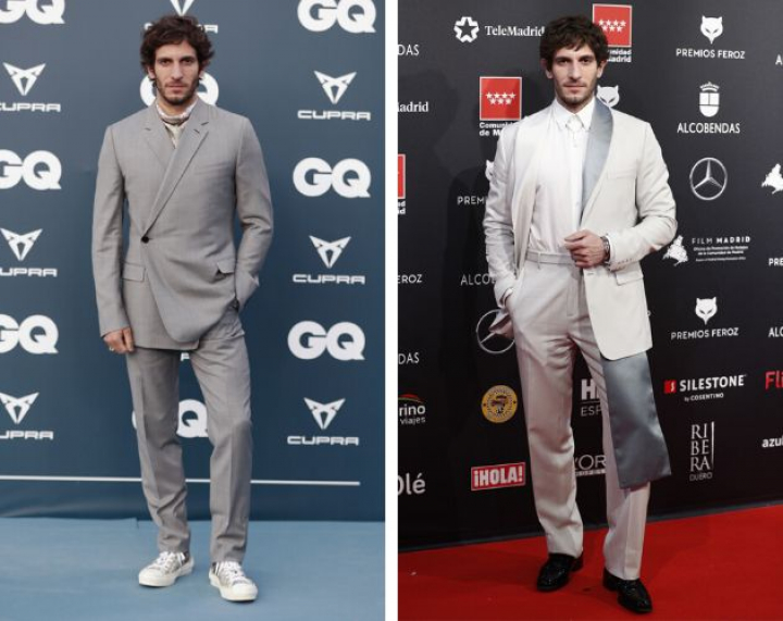 Por su parte Quim Gutiérrez se ha convertido en el mejor embajador de Dior Homme en España. La casa francesa no deja de cosechar aplausos y el protagonista de AzulOscuroCasiNegro luce sus trajes como nadie. Para muestra, su paso por los Feroz con un diseño en blanco y gris perla, o el que traje con americana cruzada y pañuelo que se enfundó para los premios GQ.