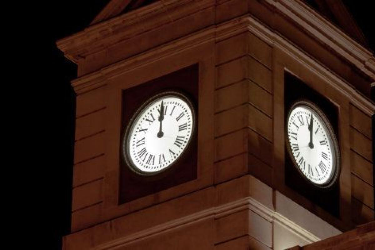 En 152 años de historia, el reloj de la Puerta del Sol no había hecho nunca un movimiento como este: retrasarse una hora para acompañar a los canarios en la bienvenida del año nuevo.