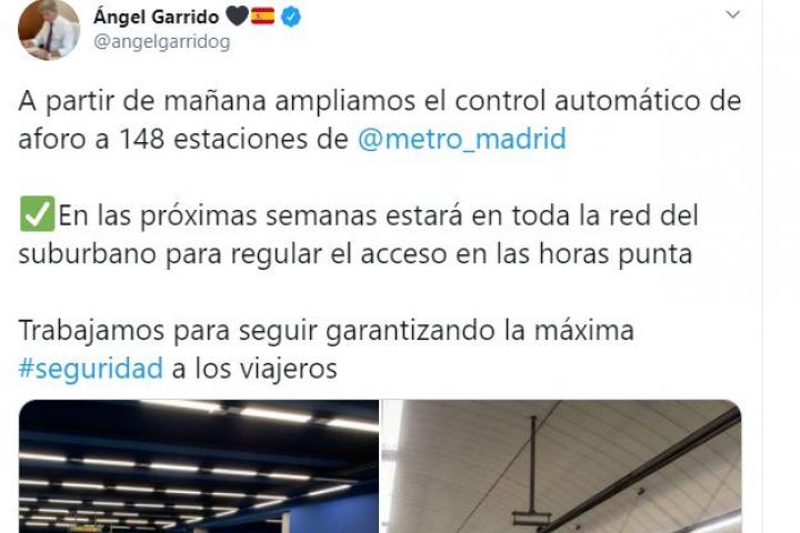 “En las próximas semanas estará en toda la red del suburbano para regular el acceso en las horas punta. Trabajamos para seguir garantizando la máxima seguridad a los viajeros”, ha escrito junto a dos imágenes.