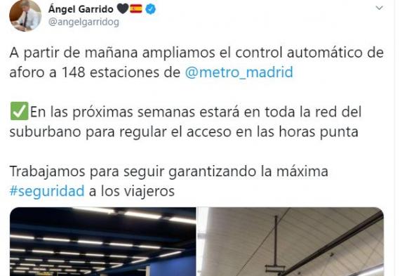 Como medida para parar el continuo incremento de casos en Madrid, el consejero ha compartido la que va a ser una nueva medida vinculada al transporte: “A partir de mañana ampliamos el control automático de aforo a 148 estaciones del metro de Madrid”.