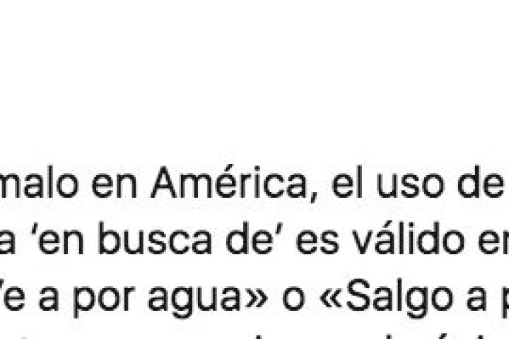 “Pese a ser anómalo en América, el uso de «a por» con sentido similar a ‘en busca de’ es válido en España en casos como «Ve a por agua» o «Salgo a por el pan». Es también frecuente en expresiones de ánimo como «¡A por ellos!» o «¡A por el bote, oé!»”, se lee en el tuit.
