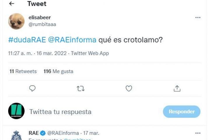 El asunto se ha ido haciendo bola hasta tal punto que un usuario ha hecho la gran pregunta a la RAE: ”¿Qué es crotolamo?” Y la Real Academia ha respondido desde su cuenta oficial como solo ella podría hacerlo: con total pulcritud.